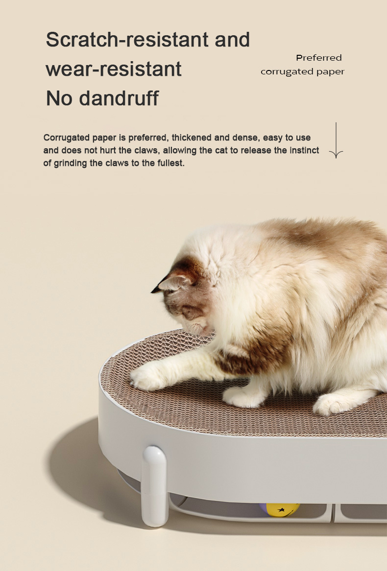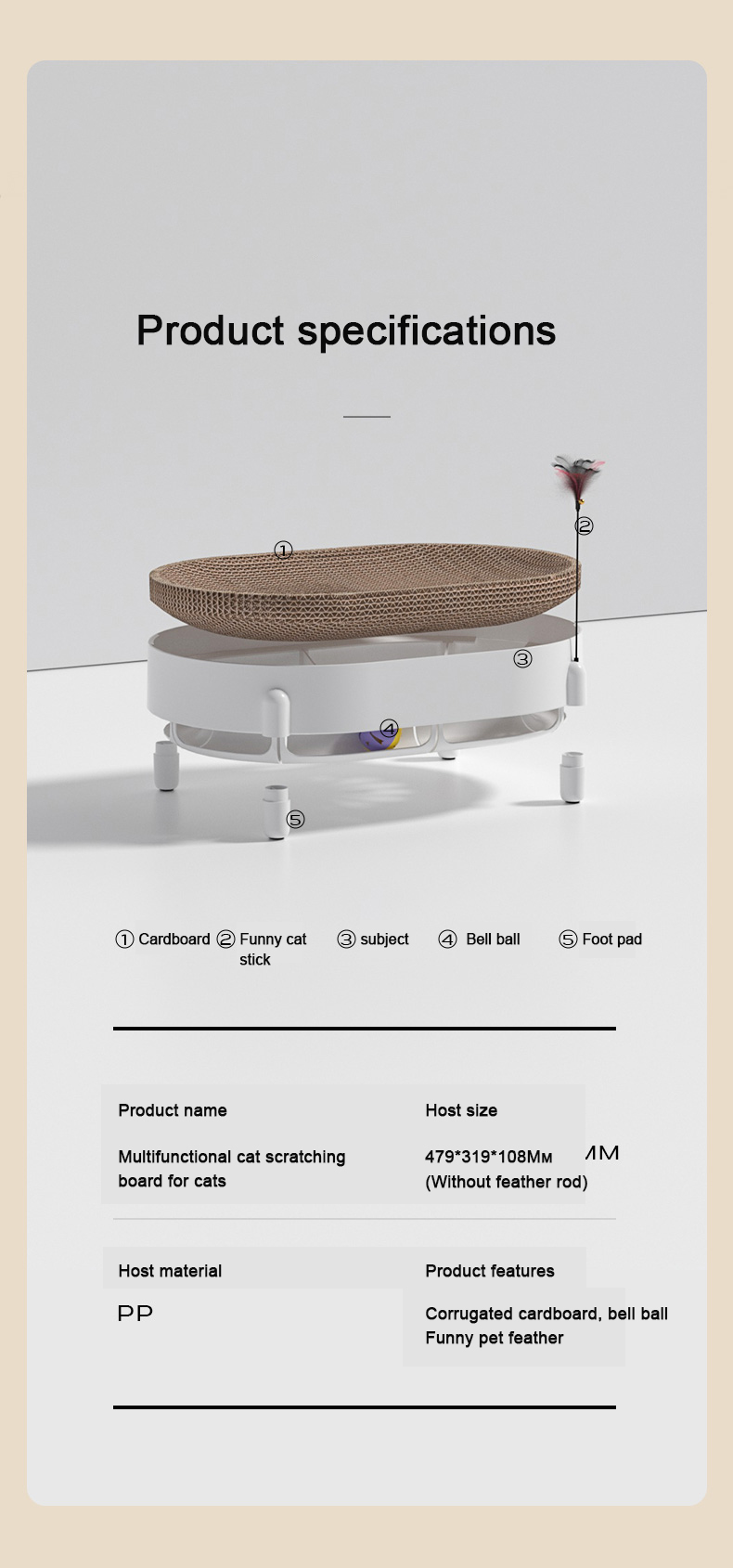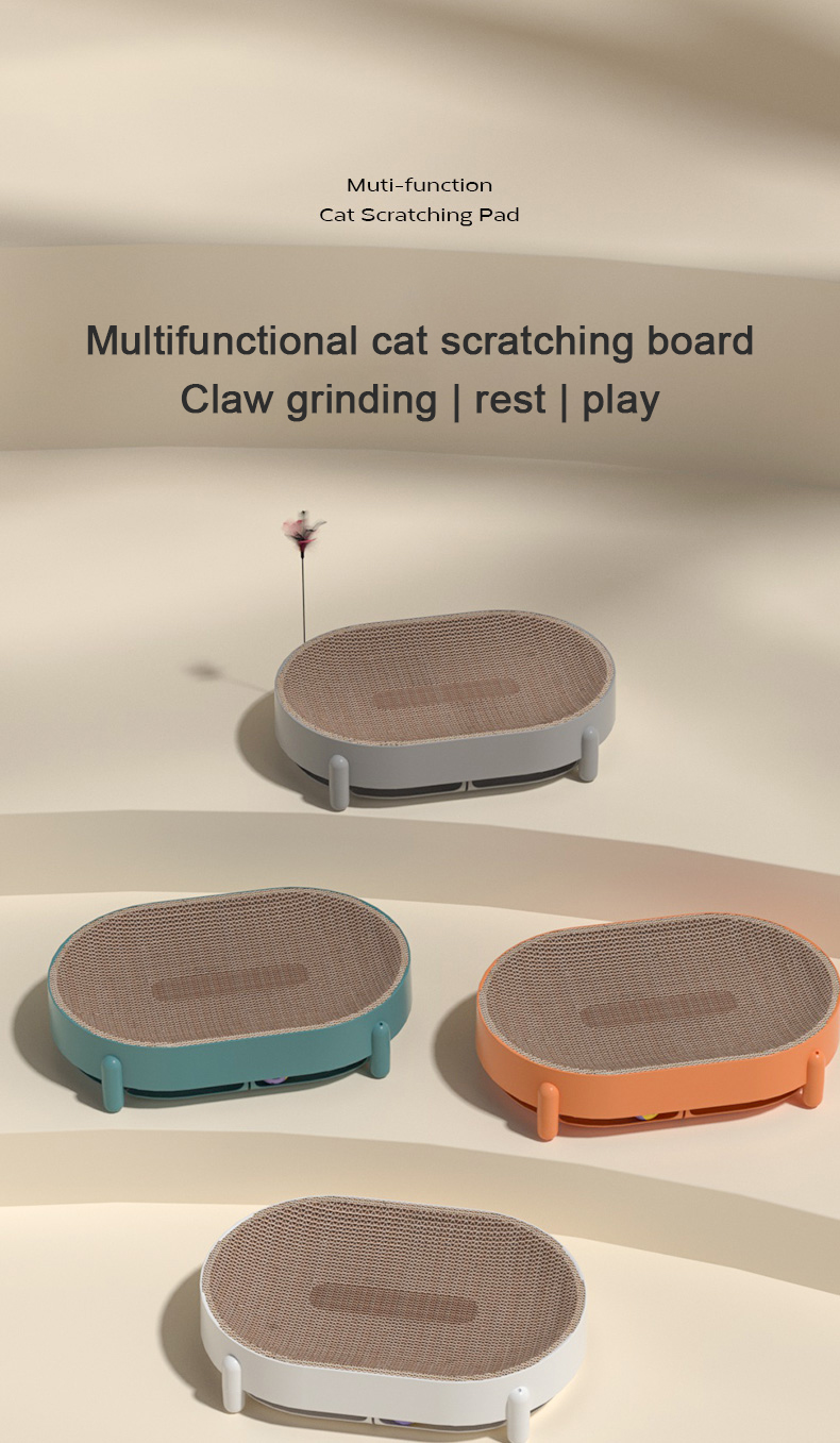 Product functions: corrugated cardboard, bell balls, teasing feathers